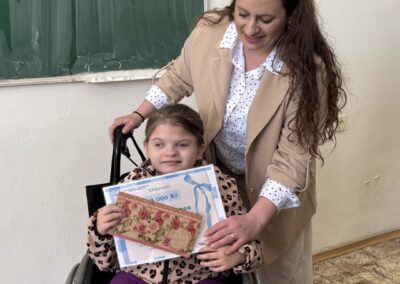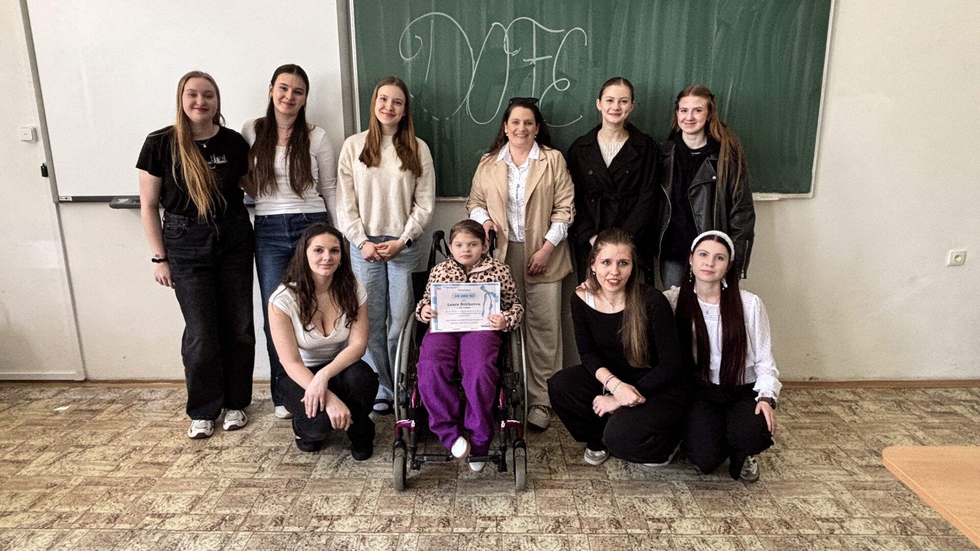 Dne 8. 4. 2026 předaly dívky z DofE dar v hodnotě 10.000,- Kč jedenáctileté Lauře Štíčkové, kterou život zavedl na těžkou cestu. Peníze utržily z DofE bufetíků, a to hlavně díky vám všem. Děkujeme, že dívky podporujete a ony mohou udělat radost někomu, kdo to potřebuje! Dofačky, jste skvělé!