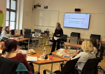 V pondělí 30. 3. 2026 jsme na naší škole hostili Klub kariérových poradců. Nejdříve jsme kolegyním ze základních škol představili naši školu a pak se od lektorky všichni dozvěděli zajímavosti o skupinovém poradenství. Děkujeme VISKu a všem zúčastněným.