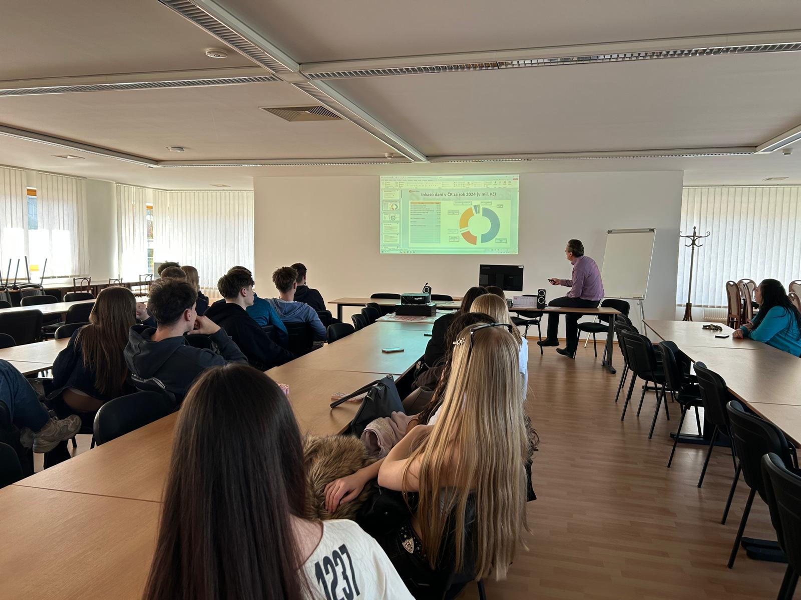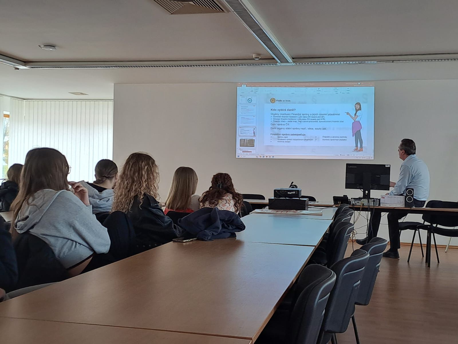 Ve středu 15. 4. 2026 a 22. 4. 2026 navštívili žáci 3. BC v rámci předmětu fiktivní firmy územní pracoviště Finančního úřadu v Příbrami. Pan ředitel Ing. Petr Šebek seznámil žaky s fungováním pracoviště, výhodách práce ve finanční správě, ukázal daně v číslech a seznámil nás, jak probíhá výběrové řízení na FÚ. Děkujeme a těšíme se na další spolupráci.